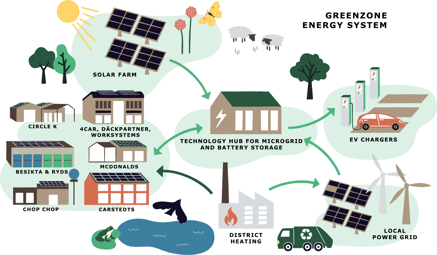 The buildings in the GreenZone are connected via a microgrid in one and the same energy system, which in combination with battery storage more than halves the power peaks compared to Umeå Energi, which can thus guarantee power to more businesses that want to establish themselves in the region.